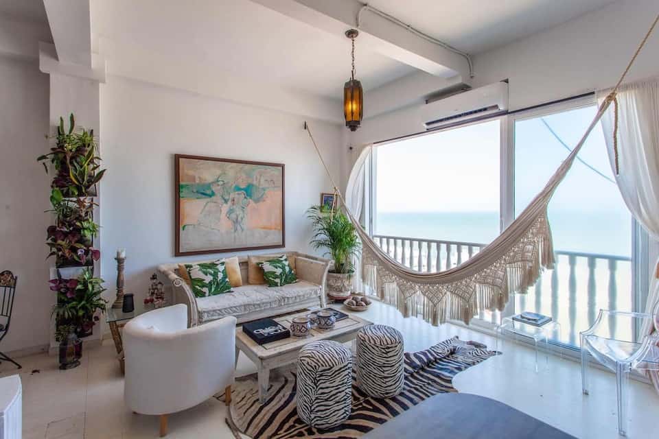 If your idea of the perfect stay in Cartagena involves lounging on a hammock and admiring the gorgeous sea views, then this Cartagena Airbnb is perfect for you. Featuring a hammock overlooking the sea in the living room, guests will find the utmost comfort here.